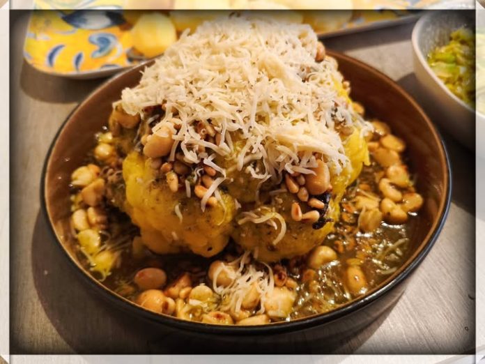 - 1 grote bloemkool (op zijn geheel ontdaan van de bladeren)