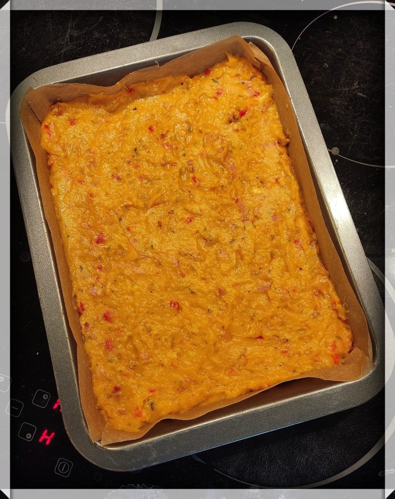 Paneer: Haal door bloem → geklutst ei → paneermeel gemengd met paprika.