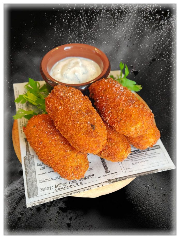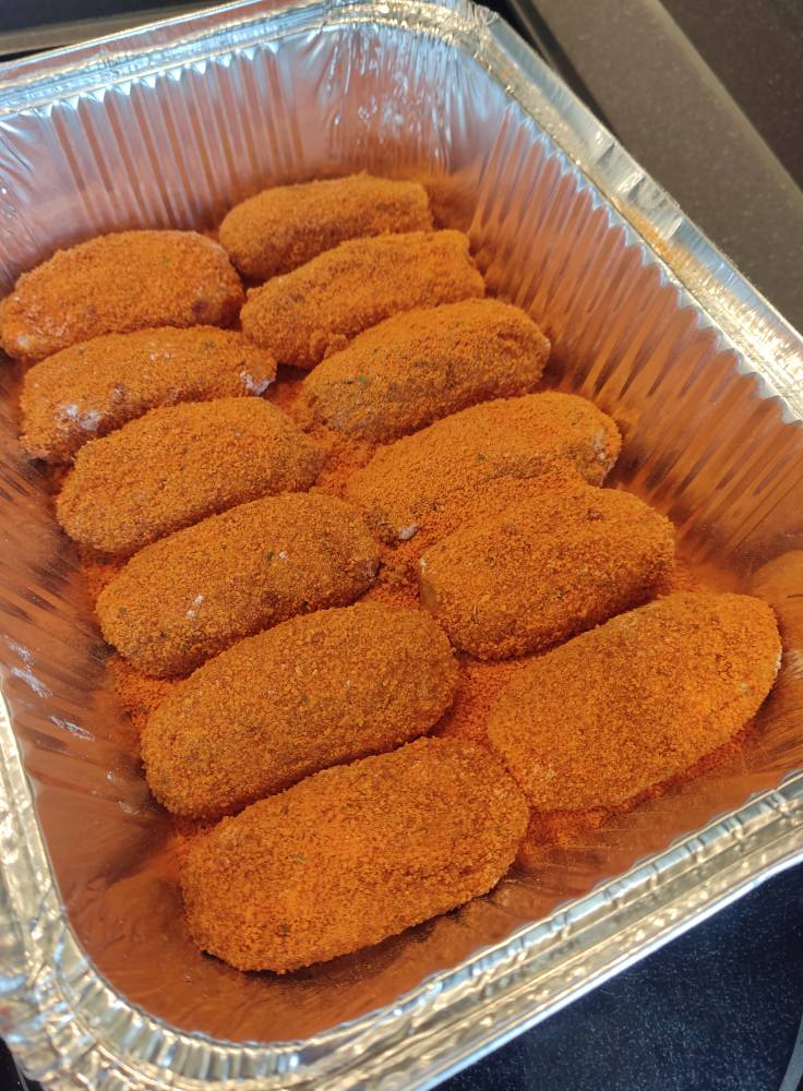 Rol balletjes of ovale mini-kroketjes (ongeveer 25–30 g per stuk).