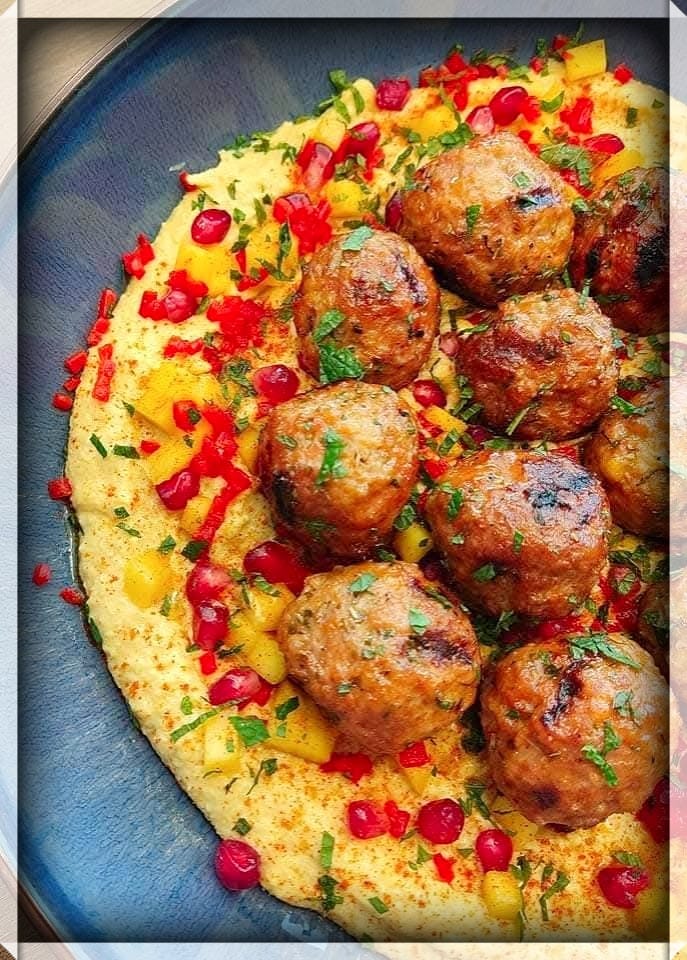 - Garneer met blokjes paprika, granaatappelpitjes, verse peterselie en een snufje gerookt paprikapoeder voor kleur.