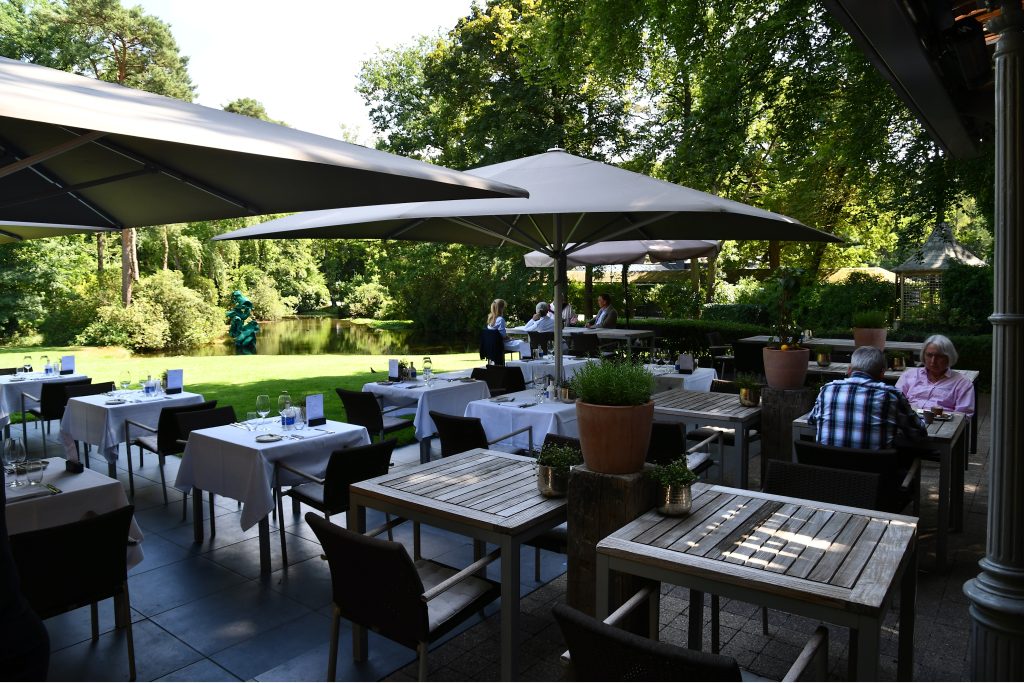 Een ander paradepaardje van La Butte aux Bois is het sterrenrestaurant Ralf Berendsen bekroond met twee Michelinsterren. Omdat deze topkeuken van wereldniveau niet alle dagen open is, laten de gasten zich vandaag verwennen door Pieter Beurskens, chef van Bistrot Le Ciel met een drie- of viergangenmenu . Hij kreeg een 13 op 20 van Gault & Millau. Het is een warme zomeravond dus kiezen we voor een tafeltje op het terras met zicht op de prachtige vijver en tuin.