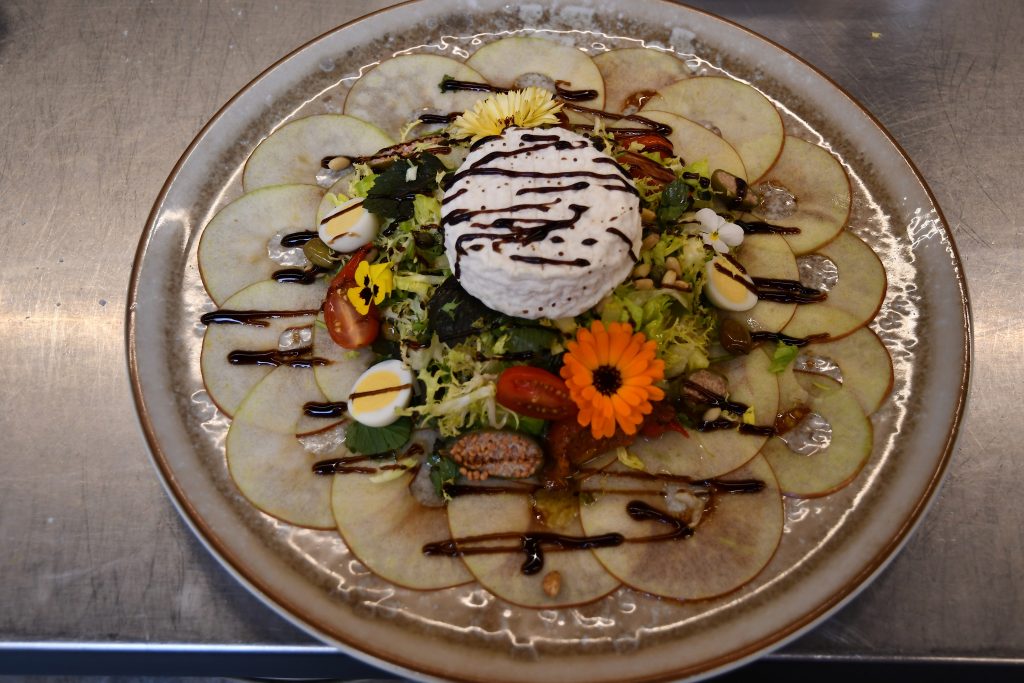 Pieter Beurskens verrast zijn gasten met mooi, vaak met bloemen versierde verfijnde gerechten met regionale producten, maar altijd met een wereldse twist subtiele kruiden en krokante elementen.